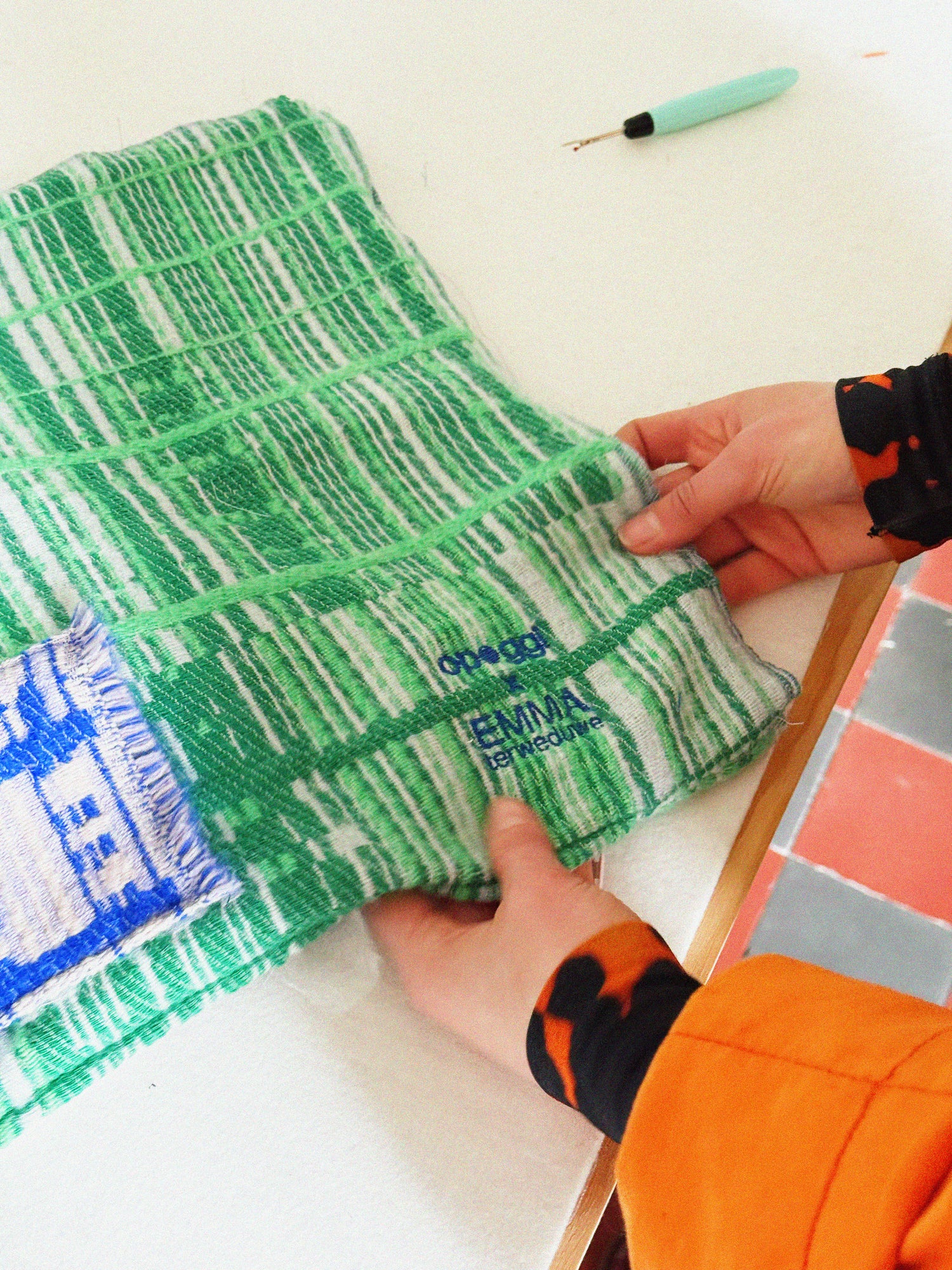 Emma Terweduwe is een textielkunstenaar/ontwerper gevestigd in Gent, België. Ze richt zich voornamelijk op jacquard geweven werk, variërend van monumentale en unieke wandtapijten tot plaids, kussens en sjaals in beperkte oplages. In haar werk transformeert ze kleurrijke grafische patronen in tactiele en expressieve stoffen die onze tastzin prikkelen. Emma krijgt steeds meer internationale erkenning en won in 2022 een prestigieuze Henry Van de Velde design award. Voor Opoggi creëerde ze een gelimiteerde serie handgemaakte warmtekussens, elk stuk is exclusief en uniek.