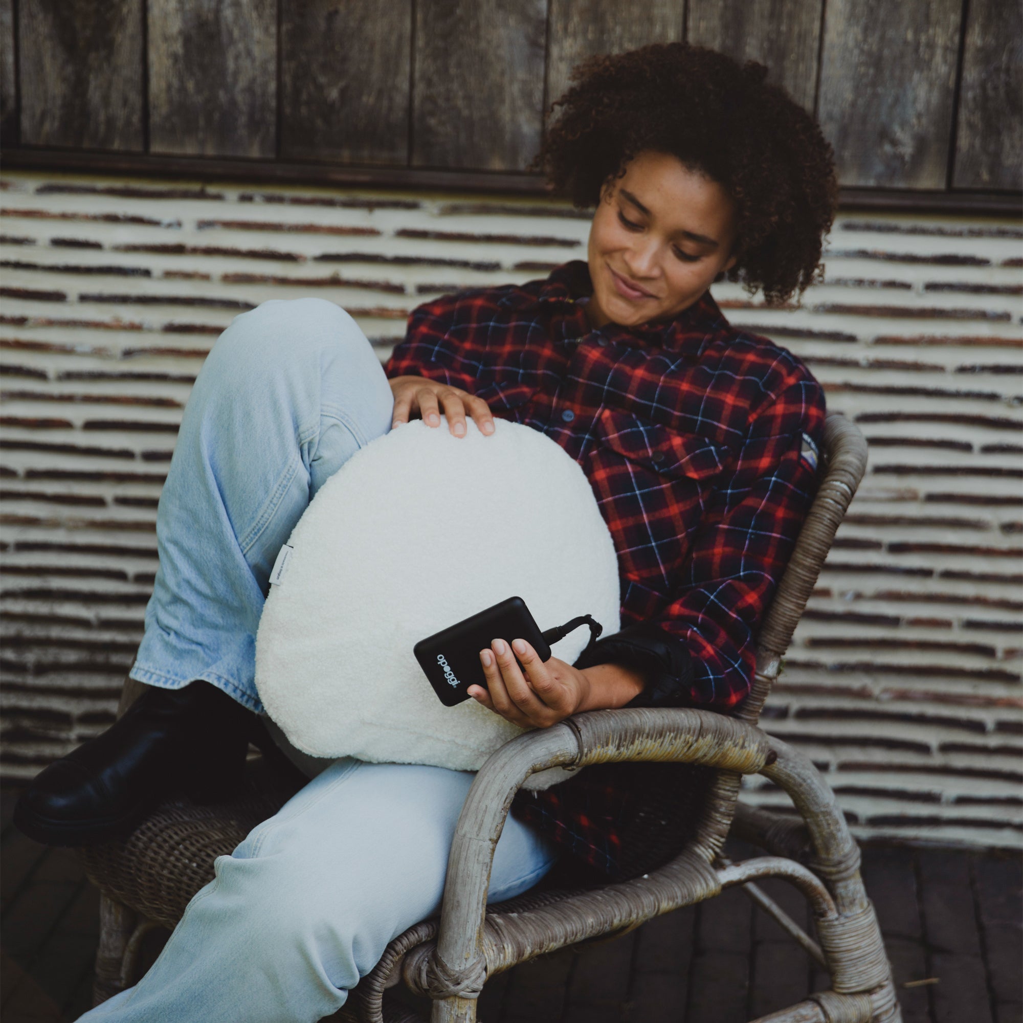 Het zachtste draadloze warmtekussen met infrarood technologie en oplaadbare batterij.